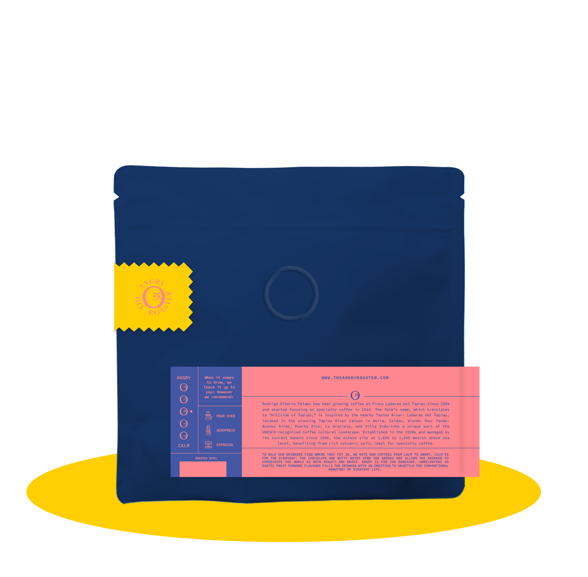 Rodrigo Alberto Pelaez has been growing coffee at Finca Laderas del Tapias since 2000 and started focusing on specialty coffee in 2014. The farm’s name, which translates to “Hillside of Tapias,” is inspired by the nearby Tapias River. Located in the stunning Tapias River Canyon in Neira, Caldas, blends four farms-Buenos Aires, Puerto Rico, La Graciela, and Villa Inés—into a unique part of the UNESCO-recognized Coffee Cultural Landscape. Established in the 1930s and managed by its current owners since 1980, the estate sits at 1,600 to 2,050 metres above sea level, benefiting from rich volcanic soils ideal for specialty coffee.
